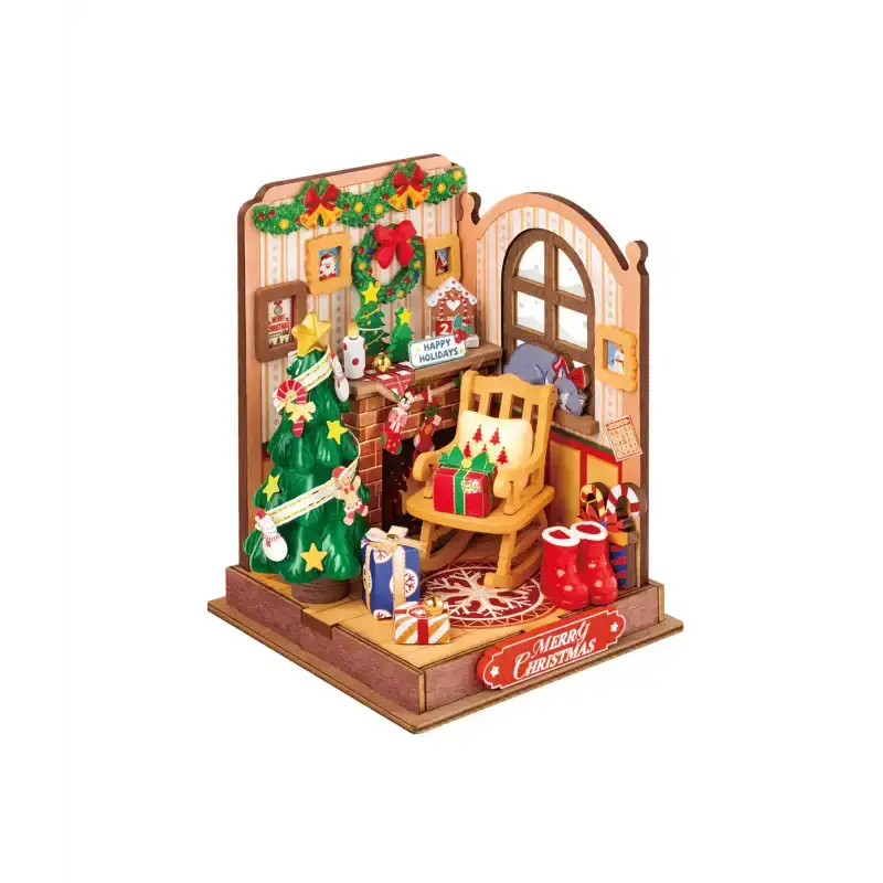 Inspirada en el ambiente acogedor de las veladas navideñas, la casa miniatura Christmas Fireplace te sumerge en un salón cálido, donde todo respira la magia de las fiestas. Entre el árbol decorado, las medias rojas colgadas, los regalos cuidadosamente envueltos y el sillón listo para recibir a Papá Noel, cada detalle ha sido pensado para revivir los recuerdos de una Navidad en familia.